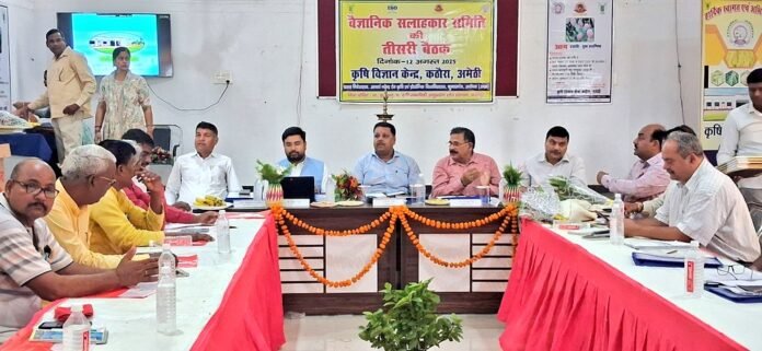 अमेठी। कृषि विज्ञान केंद्र, कठौरा में आज जिलाधिकारी संजय चौहान की अध्यक्षता में वैज्ञानिक सलाहकार समिति की तृतीय बैठक आयोजित हुई। बैठक में कृषि वैज्ञानिक, प्रशासनिक अधिकारी एवं किसान उपस्थित रहे। बैठक में जनपद के किसानों के बीच उन्नत कृषि तकनीकी का प्रसार, मोटे अनाज की खेती को बढ़ावा, पशुपालन का विकास, नर्सरी स्थापना, व्यावसायिक प्रशिक्षण और शासन की जनकल्याणकारी योजनाओं का अधिकतम लाभ किसानों तक पहुंचाने को लेकर विस्तृत चर्चा की गई। बैठक के दौरान जिलाधिकारी ने कहा कि कृषि वैज्ञानिक एवं प्रशासनिक अधिकारी आपसी समन्वय स्थापित करते हुए शासन की योजनाओं और नवीनतम कृषि तकनीकी को सीधे किसानों के दरवाजे तक पहुंचाएं। उन्होंने विशेष रूप से मोटे अनाज (मिलेट्स) की खेती पर जोर देते हुए कहा कि इससे न केवल किसानों की आय में वृद्धि होगी, बल्कि यह पोषण सुरक्षा एवं जलवायु अनुकूल कृषि को भी बढ़ावा देगा। उन्होंने निर्देश दिया कि जो किसान पहले से मोटे अनाज की खेती कर रहे हैं, वे अन्य किसानों को भी इसके लिए प्रेरित करें और उनकी आवश्यकता अनुसार बीज एवं प्रशिक्षण उपलब्ध कराएं। पशुपालन को बढ़ावा देने पर भी विशेष चर्चा हुई। जिलाधिकारी ने कहा कि अधिक से अधिक किसानों को पशुपालन के लिए प्रोत्साहित किया जाए और उन्हें आवश्यकतानुसार प्रशिक्षण एवं संसाधन उपलब्ध कराए जाएं, ताकि वे अपनी आय के अतिरिक्त स्रोत विकसित कर सकें। उन्होंने यह भी कहा कि किसानों को समय-समय पर नवीनतम कृषि आधारित प्रशिक्षण दिया जाए, ताकि वे बदलते मौसम और बाजार की मांग के अनुसार खेती में सुधार कर सकें। साथ ही सरकार द्वारा चलाई जा रही विभिन्न योजनाओं—जैसे कि फसल बीमा, सिंचाई, उर्वरक, यांत्रिकरण और बागवानी योजनाओं—की जानकारी किसानों तक प्रभावी ढंग से पहुंचाई जाए। बैठक में जिलाधिकारी ने एक समन्वय समिति गठित करने के निर्देश दिए, जिसमें कृषि वैज्ञानिक, कृषि क्षेत्र से जुड़े प्रशासनिक अधिकारी एवं किसानों के प्रतिनिधि शामिल होंगे। इस समिति की मॉनिटरिंग मुख्य विकास अधिकारी द्वारा की जाएगी। समिति का दायित्व होगा कि जनपद के सभी क्षेत्रों में किसानों को उनकी आवश्यकता के अनुसार प्रशिक्षण, तकनीकी सहायता और शासन की योजनाओं की जानकारी समय पर उपलब्ध कराई जाए। बैठक में उपस्थित कृषि वैज्ञानिकों ने विभिन्न तकनीकी समाधानों और नवीन प्रयोगों की जानकारी साझा की। इनमें जलवायु अनुकूल फसलों का चयन, कीट एवं रोग नियंत्रण के जैविक तरीके, आधुनिक सिंचाई पद्धतियां और फसल विविधीकरण के लाभ शामिल थे। नर्सरी स्थापना, समूह प्रदर्शन और नवयुवक-युवतियों के लिए व्यावसायिक प्रशिक्षण पर भी विस्तृत चर्चा हुई। जिलाधिकारी ने स्पष्ट कहा कि कृषि केवल आजीव
