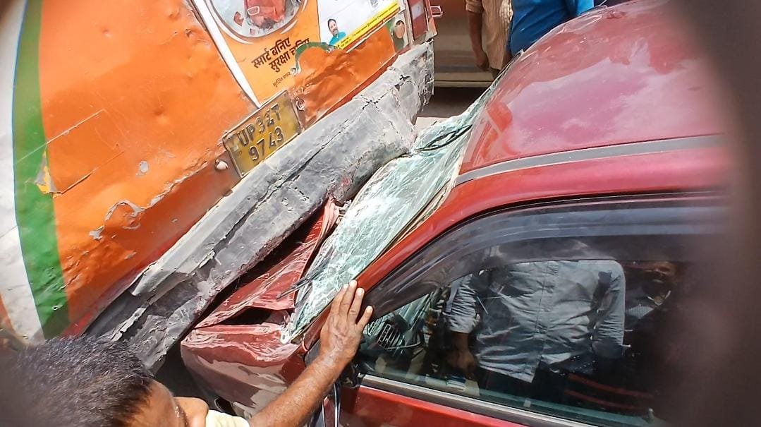 रोडवेज बस में पीछे से घुसी कार बाल बाल बचे कार सवार