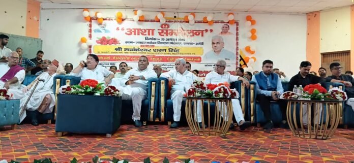 अमेठी। जवाहर नवोदय विद्यालय गौरीगंज के प्रांगण में भव्य आशा सम्मेलन कार्यक्रम का आयोजन किया गया। इस सम्मेलन का शुभारंभ उत्तर प्रदेश सरकार के संसदीय कार्य, चिकित्सा शिक्षा, चिकित्सा एवं स्वास्थ्य तथा मातृ एवं शिशु कल्याण विभाग के राज्य मंत्री मयंकेश्वर शरण सिंह ने दीप प्रज्वलित कर किया। कार्यक्रम में जनपद की उन आशा बहनों को पुरस्कृत किया गया जिन्होंने स्वास्थ्य सेवाओं के क्षेत्र में उल्लेखनीय योगदान दिया है। सम्मेलन में जनपद के सभी 13 विकास खंडों से चयनित आशा कार्यकर्ताओं को सम्मानित किया गया। पुरस्कार वितरण के अंतर्गत प्रथम स्थान प्राप्त आशाओं को 5000, द्वितीय स्थान प्राप्त आशाओं को 2000 तथा तृतीय स्थान प्राप्त आशाओं को 1000 का चेक और प्रशस्ति पत्र प्रदान किया गया। इस अवसर पर मंच पर मौजूद जनप्रतिनिधियों और अधिकारियों ने सभी आशा बहनों का उत्साहवर्धन किया। कार्यक्रम में उपस्थित आशा बहनों को संबोधित करते हुए  राज्य मंत्री  ने कहा कि ग्रामीण स्तर पर स्वास्थ्य सेवाओं की सफलता का श्रेय सबसे अधिक आशा कार्यकर्ताओं को जाता है।