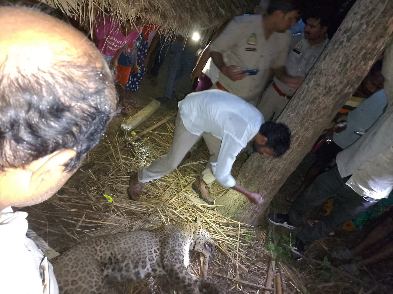 डीएम ने कहा तेंदुए को पकड़ने के लिए चार टीमें लगाई गई थी देर रात वन विभाग की टीम ने तेंदुए को पकड़ने का प्रयास किया लेकिन वह एट भत्ते की तरफ भाग गया गांव में भैंसों का शिकार करने के लिए तबेले में घुसा भैंसों के हमले से तेंदुए की मौत हो गई वन विभाग की टीम ने 100 को कब्जे में लेकर पोस्टमार्टम के लिए भेज दिया