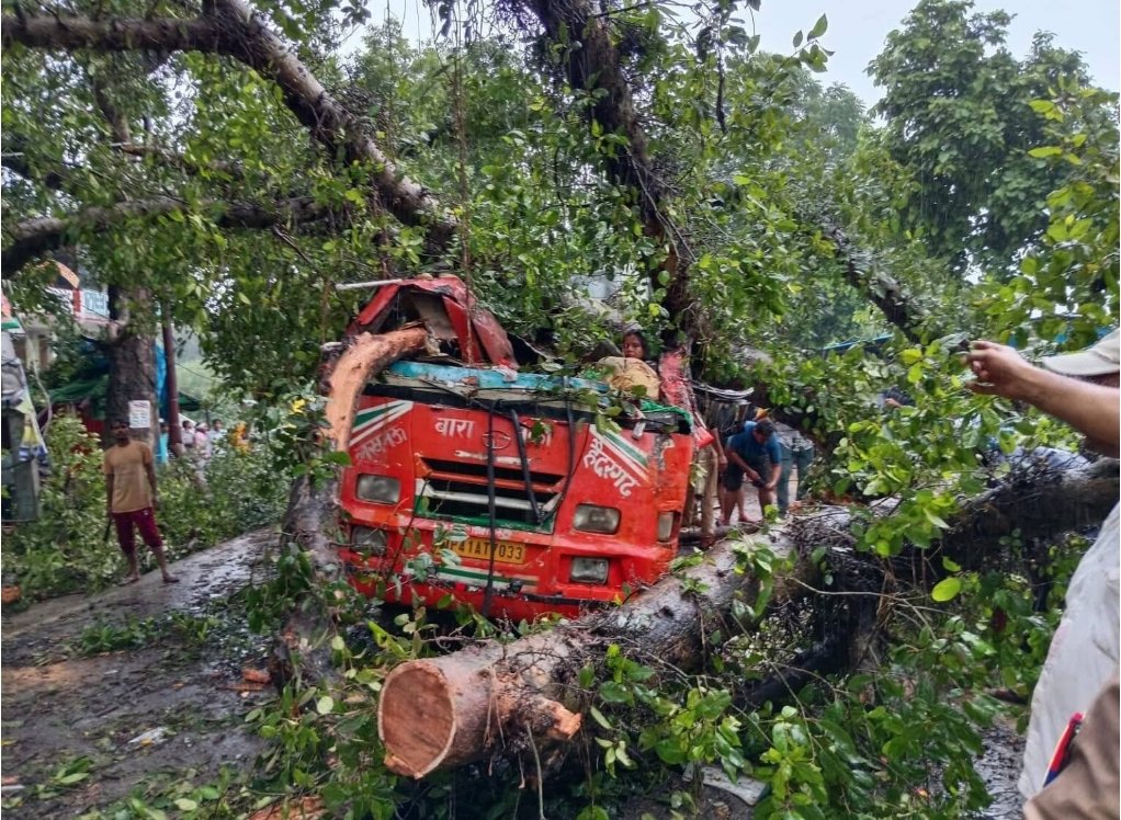 बाराबंकी। हैदरगढ़ रोड पर हरख के निकट रोडवेज बस पर गूलर का पेड़ गिर जाने से दो महिला एडीओ ,एक शिक्षिका, बस ड्राइवर व एक अन्य महिला यात्री की दर्दनाक मौत हो गई और एक घायल महिला का जिला अस्पताल में इलाज चल रहा है। सूचना पर जिलाधिकारी शशांक त्रिपाठी व जैदपुर विधायक गौरव रावत ने मौके पर पहुँचकर जानकारी प्राप्त की। उत्तर प्रदेश सड़क परिवहन निगम की अनुबंधित बस शुक्रवार की सुबह साढ़े दस बजे यूपी 41 एटी 7033 सवारियों को लेकर बाराबंकी बस स्टॉप से हैदरगढ़ के लिए रवाना हुई थी। यात्रा के दौरान बाराबंकी-हैदरगढ़ मार्ग पर हरख के समीप राजाबाजार में सड़क किनारे स्थित एक गूलर का पेड़ भारी बारिश के कारण अचानक बस पर गिर पड़ा, जिससे बस क्षतिग्रस्त हो गई औ यात्री घायल हो गए। घटना की सूचना मिलते ही प्रशासनिक एवं पुलिस अधिकारियों के साथ राहत एवं बचाव दल मौके पर पहुँचा। तत्काल कार्रवाई करते हुए घायलों को प्राथमिक उपचार हेतु जिला अस्पताल ट्रॉमा सेंटर भेजा गया। बस में मौजूद शेष यात्रियों का भी मौके पर प्राथमिक उपचार कर उन्हें सुरक्षित उनके गंतव्य तक भेजा गया। सड़क हादसे में