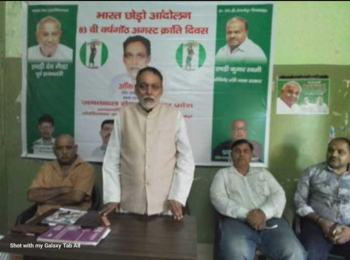 लखनऊ। जनता दल सेकुलर उत्तर प्रदेश के प्रदेश अध्यक्ष ओंकार सिंह द्वारा भारत छोड़ो आंदोलन के राष्ट्रीय वर्षगांठ अगस्त क्रांति दिवस मनाया गया।जनता दल ससुराल उत्तर प्रदेश उत्तर प्रदेश अध्यक्ष ओंकार सिंह द्वारा भारत छोड़ो आंदोलन की वर्षगांठ अगस्त क्रांति दिवस के रूप में मनाया गया। काकोरी रेल्वे लूट (काकोरी कांड) 9 अगस्त 1925 के 100 वर्ष पूरे होने पर अमर शहीद ठाकुर रोशन सिंह, राम प्रसाद बिस्मिल., राजेन्द्र नाथ लहरि, अशफ़ाक उल्ला, राज गुरु सुखदेव आदि शहीदों को नमन के साथ ही अगस्त क्रांति दिवस भारत छोड़ो आंदोलन की पूर्व संध्या पर जनता दल सेक्युलर द्वारा उत्तर प्रदेश कार्यालय 127 बी न्यू ब्लॉक दारूल सफा लखनऊ में जनता दल सेक्युलर के प्रदेश अध्यक्ष माननीय ओंकार सिंह के नेतृत्व में उनकी याद मे कार्य क्रम आयोजन किया गया जिसमें सभी प्रदेश पदाधिकारियों वह कार्यकर्ताओं ने क्रांतिकारी शहीदों को नमन करते हुए आजादी के आंदोलन के महान नेताओं पूज्य बापू, आचार्य नरेंद देव, जय प्रकाश नारायण, डॉ लोहिया, यूसुफ मेहर अली आदि को श्रध्दांजलि अर्पित की गयी इस अवसर पर प्रदेश उपाध्यक्ष..डॉ अवधेश कुमार यादव प्रदेश उपाध्यक्ष अल्पसंख्यक रंजीत सिंह, महामंत्री राजेश सिंह, दीपक पांडे.. धर्मेंद्र कुमार रस्तोगी प्रदेश सचिव, प्रदेश संगठन मंत्री.. सुखदेव प्रसाद, नामवर राम बी डी सी राम प्रसाद कार्यालय प्रभारी, अनिल, विवेक, ताज आलम, आदि प्रमुख नेताओं ने अपने विचार रखें।